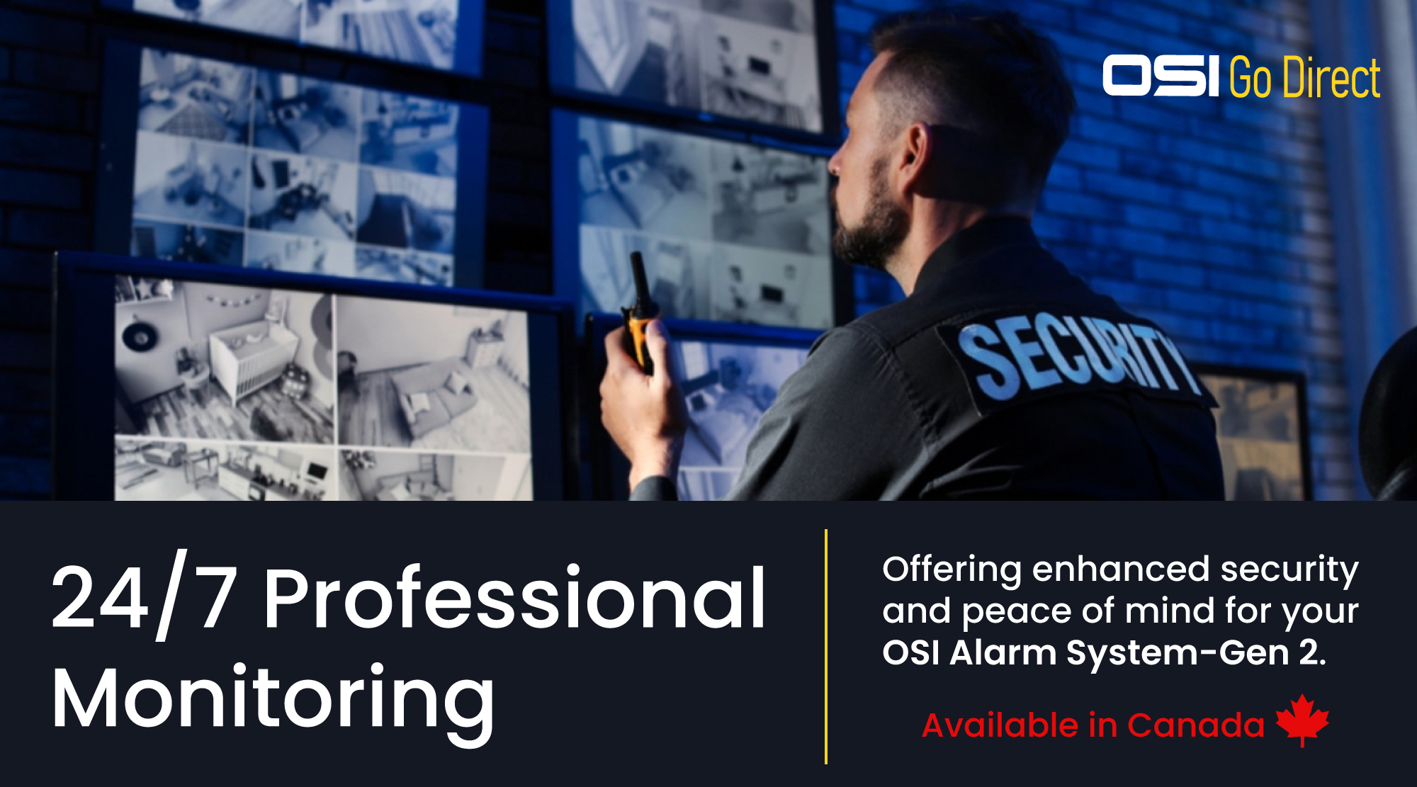 OSI Go Direct’s 24/7 Professional Alarm Monitoring service is currently available exclusively in Canada. Please note that certain areas may require a permit for professionally monitored alarm systems. If a permit is needed, we’ll send you an email with all the necessary details and provide assistance to address any questions. We’re actively working on expanding our 24/7 Professional Alarm Monitoring service to the USA.